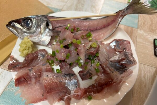 シンプルなアジのお刺身だけでなく、たたきも完成。
